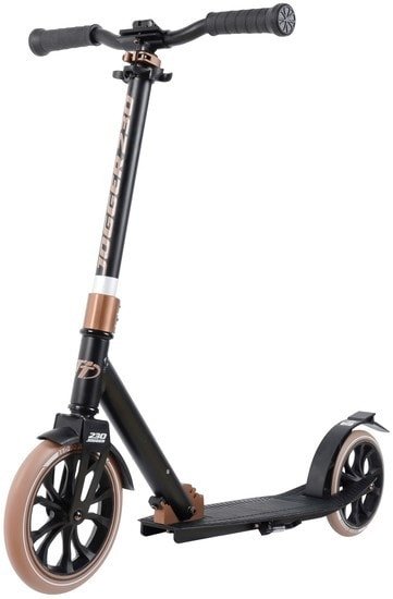 | Информация | Достаточно широкий изогнутый руль (birdtype) - 47,5 см, обеспечивает комфортное положение рук во время катания. Как и в других самокатах этой серии, модель получила новые удобные резиновые грипсы, в виде "намотки" с широкими барендами. Специальный зажим исключает люфт ручек и, соответственно, посторонних звуков при езде. В сложенном состоянии для ручек самоката предусмотрены специальные зажимы. Руль имеет три фиксированных положения по высоте - 95-100-105 см, но за счет зажима может достаточно надежно фиксироваться и в более низких точках - до 80,5 см. Специальная светоотражающая полоса на руле делает катающегося более заметным для водителей в условиях плохой видимости. Кроме того на нем предусмотрена возможность крепления ремешка для переноски.Надежная система складывания Easy Fold обеспечивает удобную перевозку и хранение самоката и его быстрое складывание/раскладывание, не содержит выступающих элементов. С помощью регулировочного винта есть возможность отрегулировать люфт системы складывания для максимально комфортного использования. Полиуретановые колеса - переднее 230х30 мм и заднее 200х30 мм позволят комфортно передвигаться в городских условиях. Хороший накат обеспечивают подшипники Abec 7.Дека длиной 57,5 см и шириной 15 см имеет футспейс 33 см, достаточный для размещения обеих ступней. Материал покрытия деки - износостойкая резина, обеспечивающая легкий уход за поверхностью. Торможение осуществляется алюминиевым тормозом-крылом, на котором дополнительно установлен пластиковый брызговик. Складывающаяся подножка позволит комфортно припарковать самокат на время отдыха. |