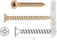 | Информация | Используется для крепления различных конструкций к дереву, фанере, ДСП. Шуруп имеет потайную головку с крестообразным шлицем (PZ) и острый наконечник. |