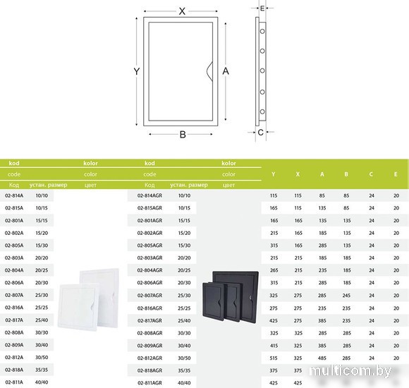 | Информация | ? Люк airRoxy 02-806agr 215х315мм изготовлен из высококачественного, белоснежного пластика ABS. ? Универсальная конструкция рамы и заслонки позволяет изменять направление открывания двери, даже если рама уже установлена в стене. |