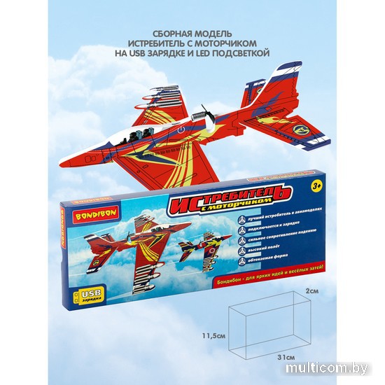| Информация | Самолёт сборный "ИСТРЕБИТЕЛЬ" с моторчиком на аккумуляторе и USB-зарядкой от ТМ Bondibon изготовлен из вспененного полипропилена, что делает его особенно легким и прочным, а также безопасным для малышей от 3 лет. Обтекаемая форма корпуса планера обеспечивает высокий полет и хорошее удержание высоты. Простая и безопасная авиамодель не требует дополнительных инструментов для сборки, все необходимые компоненты входят в комплект набора. Самолет запускается в небо броском руки, после включения пропеллера, отличается хорошими планирующими свойствами. Нет необходимости развивать ловкость или ловить направление ветра. Самолет обеспечит стремительный старт в любых условиях. Время полёта можно регулировать: 15 или 20 секунд, после чего моторчик автоматически отключается и самолет переходит в режим свободного планирования. Полный заряд обеспечивает до 50 полётов. |