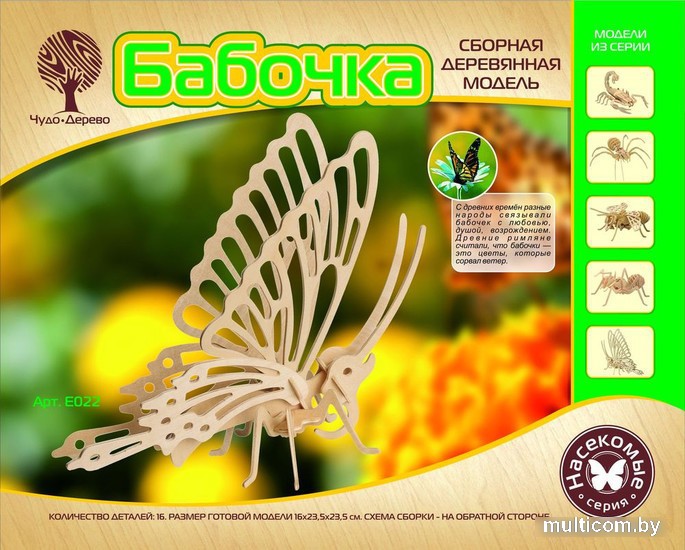 | Информация | Комплект включает в себя набор деталей, вырезанных на листовом дереве (фанера); схему сборки; наждачную бумагу. Детали скрепляются в порядке и очередности, обозначенной в инструкции. Для прочности соединений рекомендуется использовать клей ПВА (не токсичен, не имеет запаха, после высыхания становится прозрачным, имеет эластичный клеевой шов, при загустевании может быть разбавлен водой). |