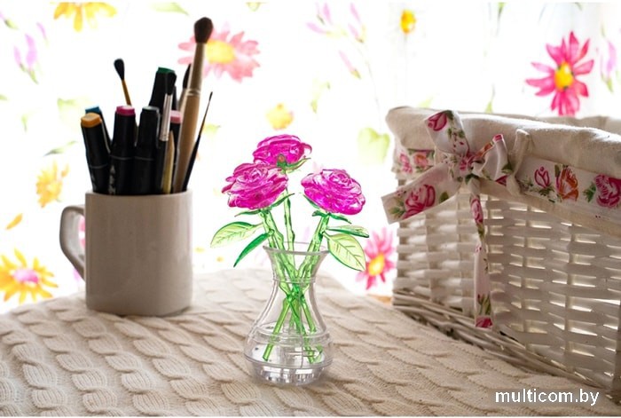 | Информация | 3D-пазл из серии Crystal puzzle в форме букета кристальных роз в изящной вазе станет отличным подарком близкому человеку или украшением коллекции. Пазл состоит из 41 детали и над его сборкой придется потрудиться, ведь каждый цветок в букете и прозрачная ваза собираются отдельно. Готовая композиция изумительно смотрится в интерьере, розы можно доставать из вазы, крутить в руках, рассматривать. |