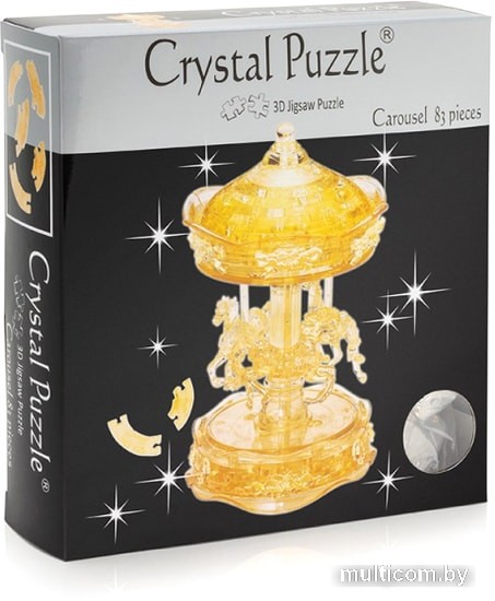 | Информация | Один из самых потрясающих 3D-пазлов из серии Crystal puzzle – золотая карусель! Модель состоит из 83 деталей. Все части пазла переданы с точностью и любовью – от изящных лошадей в сбруе до винтажных вензелей на корпусе. Готовая карусель будет крутиться, лошадки пустятся с пляс, а вы сможете порадоваться своей работе. |