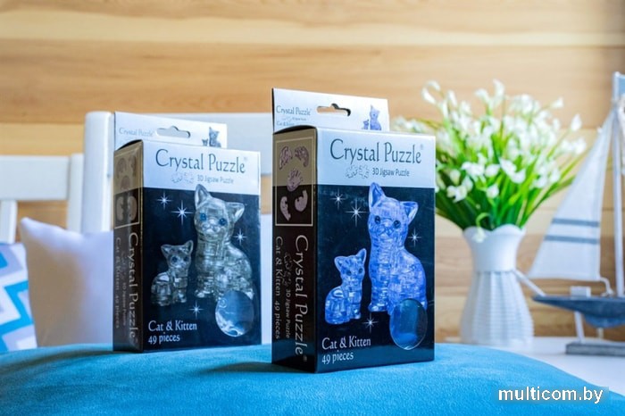 | Информация | В этом наборе Crystal puzzle вы найдете сразу два объемных 3D-пазла! Взрослая кошка и ее маленький котенок собираются отдельно, но образуют единую композицию. Ваша задача – определить, какой из фигурок принадлежат полупрозрачные детали, и соединить их в правильном порядке. В наборе вы найдете 49 деталей и подробную инструкцию по сборке композиции. |