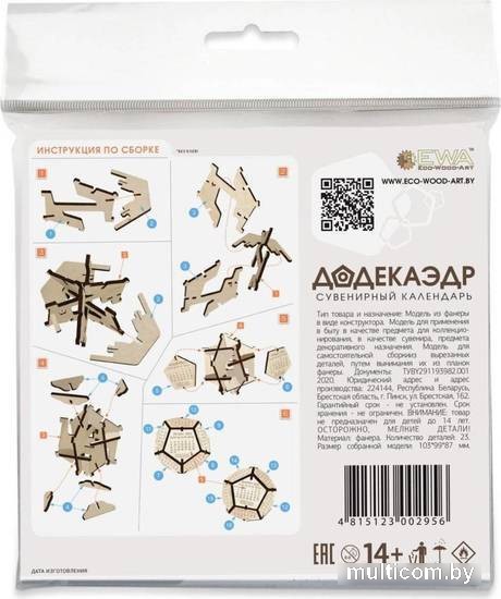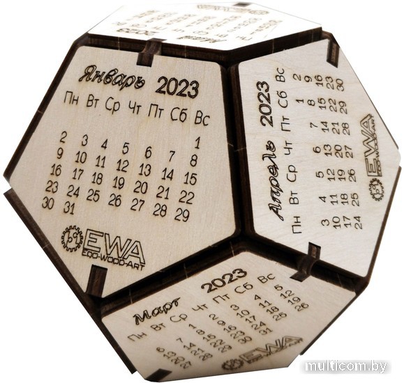 | Информация | Сборная моделька из дерева, предмет коллекционирования и простой недорогой сувенир для коллег, друзей и партнеров. Деревянный календарь "Додекаэдр". Сама форма додекаэдр кажется, что была придумана для размещения календаря с месяцами и датами, 12 граней и 12 месяцев. В наборе 23 детали, изготовлены из березовой фанеры 4 мм, сборка без клея. Размер модели в собранном виде: 103x99x87 мм |