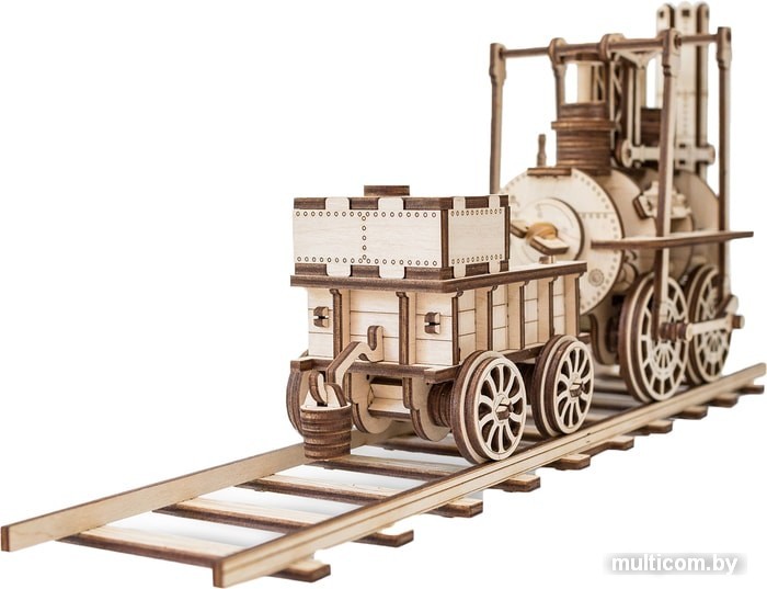 | Информация | Локомотив — механическая модель локомотива выпуска 1825 года, который первым перевез людей по первой в мире общественной железной дороге Стоктон-Дарлингтон в Великобритании. Историческая действующая модель с резиномотором для самостоятельной сборки. Дает общее представление о механике передачи движения от двигателя на колеса. Идеальная настольная модель паровоза в сцепке с тендером на фрагменте железной дороги. |