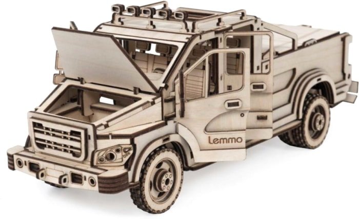 | Информация | У деревянного конструктора много подвижных частей, а именно: - открываются дверцы кабины, - открывается крышка капота и кузова, - открывается задний борт, - вращаются колёса. |