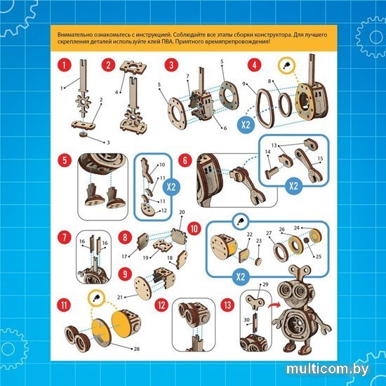 | Информация | С деревянным конструктором «Робот» у ребёнка получится собрать 3D-модель, потренировать внимательность и мелкую моторику рук. |
