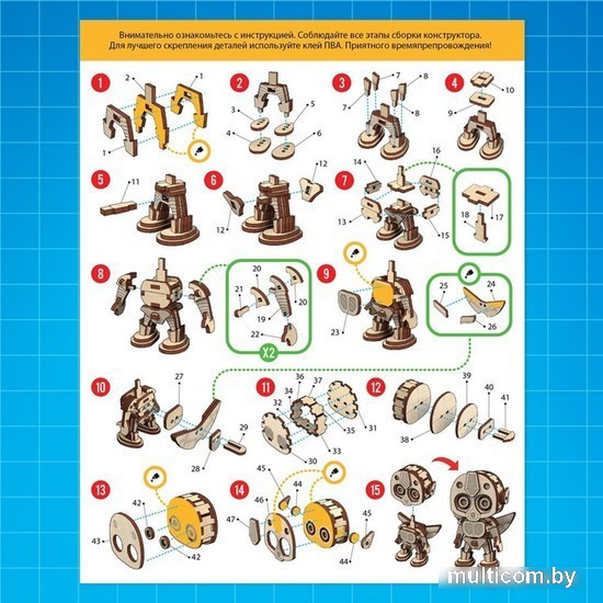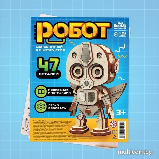 | Информация | С деревянным конструктором «Робот» у ребёнка получится собрать 3D-модель, потренировать внимательность и мелкую моторику рук. |