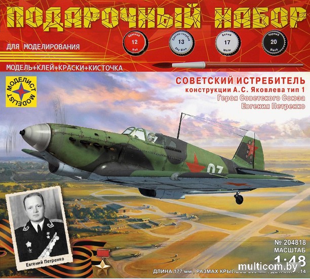 | Информация | ЯК-1 - советский одномоторный самолёт-истребитель Второй мировой войны. Первый боевой самолёт, разработанный под управлением Александра Сергеевича Яковлева как опытный истребитель. Первый полет опытного образца состоялся 13 января 1940 г. Заводские испытания проводил летчик-испытатель Ю.И. Пионтковский. Уже во время второго полета была достигнута скорость 587 км/ч на высоте 5100 м. Самолет обладал хорошими летно-пилотажными качествами, был прост в управлении. Однако 27 апреля, во время одного из полетов, произошла авария. Летчик-испытатель погиб. При выяснении причин катастрофы обнаружили производственный дефект. Тем не менее, 10 июня истребитель был передан на государственные испытания в НИИ ВВС РККА, которые успешно завершились в ноябре 1940 года. Як-1 в первые месяцы войны быстро завоевал репутацию лучшего советского истребителя. Уступая «мессершмиттам» в скорости и скороподъемности, он отличался неплохой горизонтальной маневренностью. Як-1 был устойчив в воздухе и обладал хорошей управляемостью, был доступен для малоопытных пилотов. Конструкция самолета была приспособлена к массовому производству с применением недефицитных материалов, а также обладала достаточной ремонтопригодностью. В то же время, из-за деревянной конструкции крыла, она обладало низкой стойкостью к повреждениям. На Як-1 летало множество советских асов. Героем Советского Союза Евгением Васильевичем Петренко было выполнено 293 боевых вылета для сопровождения бомбардировщиков и штурмовиков, лично сбито 15 вражеских самолётов. Он участвовал в Параде Победы 24 июня 1945 года в Москве. |