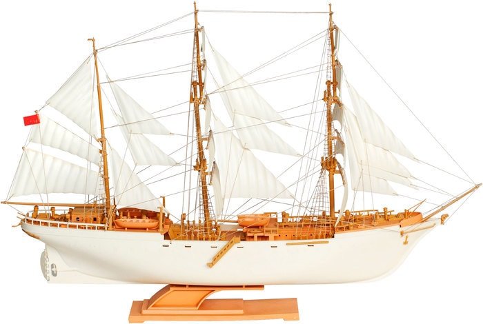 | Информация | Собранная модель представляет собой уменьшенную копию самого крупного учебного корабля советского флота вплоть до Второй мировой войны - барка "Товарищ". Судно предназначалось для коммерческой торговли с Индией, отсюда большой размер и 4 мачты с парусами, чтобы вести больше груза и преодолевать большие расстояния. Модель имеет детально проработанную палубу, с запасными шлюпками на борту, 4 мачты с парусами и стропами, крепящимися к ним, и подставку. |