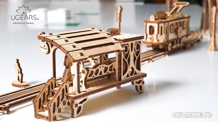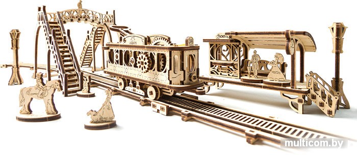 | Информация | Модель «Трамвайная линия» состоит из 14 элементов, созданных в удобном масштабе. С одной стороны, все части модели интересно собирать, с другой — после сборки они превращаются в механические игрушки с уникальным дизайном, в которые вы погружаетесь так, что не можете оторваться. Модель «Трамвайная линия» имеет яркие заметные подвижные механические элементы и выполнена полностью из дерева. Это целый механический мир, который можно расширять следующими моделями серии «Механический город». Герои модели «Трамвайная линия»:- Самоходный Трамвайчик с пантографом на крыше, резиномотором, шестернями и приводами, открывающимися и закрывающимися дверьми. Трамвайчик заводится вентилем-шестерёнкой и начинает движение после поднятия пантографа. Одного завода на трамвае достаточно, чтобы он проехал по рельсам, заехал в депо на поворотный круг, где его остановит специальный «язычок». При помощи переводного рычага рельсы поворачиваются на 180 градусов, и трамвай на все том же заводе самостоятельно выедет из депо и проедет до поворота.Никакой электроники внутри! Только сила гравитации, шестерёнки , резиномотор…и море удовольствия!- Трамвайная остановка с билетным киоском на платформе, часами, лавочкой и маленькими съемными ступеньками, которые могут быть приставлены к любому месту платформы- Трамвайное депо, куда заезжает трамвай и где он стоит в перерывах между рейсами. Депо оборудовано поворотным кругом для разворота трамвая на 180 градусов перед новым запуском. На рельсах поворотного круга есть специальный «язычок», который в закрытом положении останавливает трамвай, а после поворота откидывается и, если у трамвая еще остался завод резинки, он поедет дальше по спуску.- Пешеходный мост – пешеходный переход – сконструирован в форме арок с мостиком и боковыми лестницами и устанавливается над трамвайными путями. Также, пешеходный переход может быть расположен на перекрестке, и через арки могут проезжать машины.- Прямые рельсы с соединениями и контактной рельсой посередине- Радиусные рельсы с соединениями и контактной рельсой посередине- Уличные фонари- Джентльмен (миллионер, фабрикант, меценат, любимец прессы, герой светской хроники или герой Вашей собственной истории)- Молодой изобретатель (шпион, секретный агент….. Ваш вариант ..в Вашей собственной истории)- Таинственная незнакомка с собачкой или просто красивая девушка в Вашей истории- Девушка-мороженщица, которая прячется под зонтиком или еще одна обаятельная незнакомка в Вашей собственной истории- Шериф на коне или харизматичный ковбой в Вашей собственной истории- Фабричный рабочий- Мальчишка-газетчик |