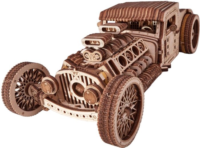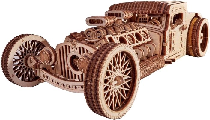 | Информация | Горячий нрав, свобода двигателей, яркий корпус и изумительный вид – это настоящий Хот-род, монстр-родстер! Компания Wood Trick смогла передать всю красоту этих кастомных автомобилей. Специально для Ассоциации Хот-род была создана эта потрясающая сборная модель! В конструкторе из дерева "Хот-род" удалось реализовать все кастомные элементы: от решётки радиатора и двигателя до спортивного шасси. В собранном Родстере Вы сможете испытать коробку передач в нескольких режимах и посоревноваться с другими любителями гонок. Открытый мотор будет работать "как часы". Колёса в деревянном гоночном Родстере обтянуты резиной, чтобы развивать большую скорость. Сборная модель из дерева собирается без клея с помощью деревянных зубочисток. В наборе есть всё необходимое для сборки, включая яркую цветную глянцевую инструкцию. |