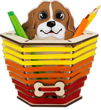| Информация | Миленькие глазки, дружелюбный настрой и модный образ органайзера «Бигль Тоби» не оставляют равнодушными детей и их родителей. Необычный набор для творчества станет функциональным и ярким дополнением письменного стола, вместит в себя канцелярские принадлежности, небольшие учебные карточки и любимые конфеты. Сборка органайзера погружает в увлекательный процесс, задействуя и творческое мышление, и мелкую моторику: 1. Для яркого привлекательного образа, приклейте на деревянную основу ламинированные наклейки с двух сторон. 2. Чтобы собрать конструкцию, следуйте подробной инструкции и соберите органайзер как конструктор. 3. Для украшения тканевых шнуров, во время наматывания их на деревянные засечки стенок органайзера, используйте деревянный декор: бантик, косточку и сердечко. Когда все шнуры намотаны (цветовую последовательность шнуров можно варьировать по желанию), удобный органайзер готов. Теперь можно приступать к важным учебным и творческим процессам, вдохновляться новыми делами и свершать великие дела! |