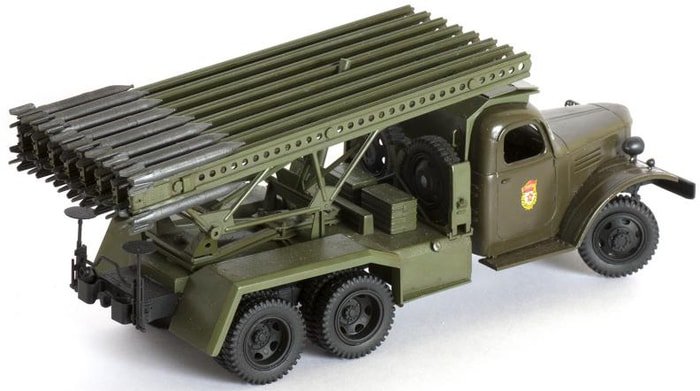 | Информация | Историческая справка: Гвардейский реактивный миномет БМ-13 «Катюша», созданный в 1941 году, оказался едва ли не самой известной боевой машиной периода Второй мировой войны. Данная конструкция пусковой установки широко применялась в войсках и устанавливалась на разные автомобильные шасси. В некоторых странах БМ-13 стоит на вооружении до сих пор. |