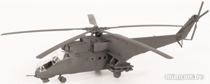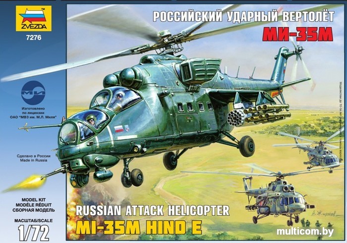 | Информация | Ми-24ВМ (Ми-35М, AH-2 Sabre) — российский транспортно-боевой вертолёт круглосуточного применения, разработанный в ОКБ Миля и серийно выпускающийся в Ростове-на-Дону на заводе «Роствертол» холдинга «Вертолёты России» как на экспорт, так и для нужд Минобороны России. Предназначен для уничтожения бронетанкового вооружения и техники, десантирования и огневой поддержки подразделений сухопутных войск, эвакуации раненых, а также для перевозки грузов в кабине или на внешнем подвесе.Вертолет Ми-35М – дальнейшая модернизация широко известного боевого вертолета Ми-24В, Ми-24 ВП. Отличается использованием новых несущего и рулевого винтов, модернизированным крылом и комплексом прицельно-навигационного оборудования, позволяющим применять вертолет круглосуточно, в простых и сложных метеоусловиях.Детально проработанные поверхности, внутренняя расшивка.Детализированные сборные двигатели, варианты сборки с открытыми или закрытыми кожухами двигателей.Проработанный интерьер кабины, 2 проработанные сборные фигурки экипажа, варианты сборки с открытыми или закрытыми люками доступа в кабину.Проработанный грузовой отсек с отдельно выполненными полом, потолком, передней и задней стенками, варианты сборки с открытой или закрытой дверью.Сборные детализированные двигатели, варианты сборки с открытыми или закрытыми кожухами двигателей, вариант сборки с дополнительными глушителями.Проработанная колонка несущего винта с деталями механизма перекоса, проработаный задний винт.Подвижная подносовая скорострельная пушка, несколько видов различного подвесного вооружения для типового варианта.Подробная декаль с проработанной техничкой как для вертолёта, так и для подвесного вооружения. |