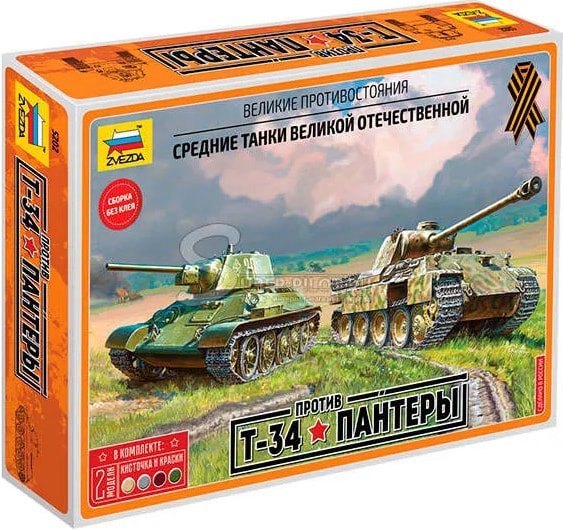 | Информация | В набор входит:Сборная модель танка Т-34;Сборная модель танка Пантера;Кисточка и Краски (4 цвета);Инструкция по сборке;Красочная брошюра с интересными фактами об истории данных танков. |