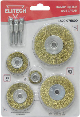 | Информация | ? Набор щеток для электроинструмента ELITECH 1820.075800 включает в себя 5 штук плоских щеток размером 25-38-50-63-75 мм. ? Каждая щетка оснащена шпильками для удобной установки на дрель. ? Изготовлены из металла для долговечности и надежности. ? Подходят для различных видов работ и материалов. ?? Важно: использовать только совместимые электроинструменты. |