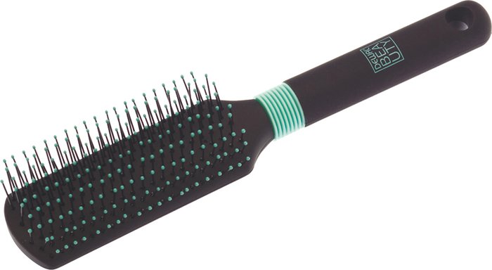 | Информация | Щетка выполнена в оригинальном черно-бирюзовом цвете. Удобное в использовании покрытие SoftTouch. На ручке щётки сделаны удобные прорезиненные вставки для комфортного расположения в руке. Щётка с закругленной ручкой и нейлоновыми штифтами. Легкая и удобная. Подходит для волос любого типа. |