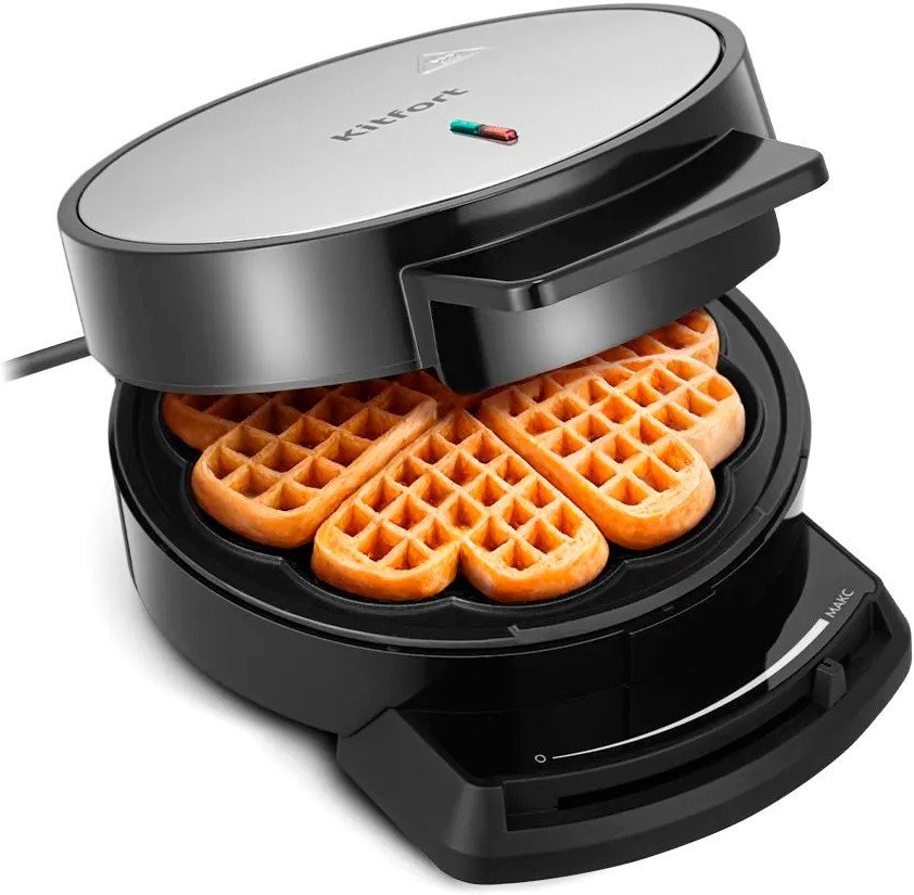 | Информация | -Электрическая вафельница Kitfort КТ-5616 поможет приготовить вкусные вафли в домашних условиях, радуя вас и ваших близких оригинальной формой выпечки. За одно приготовление вы получите одну большую вафлю в форме цветка, которую легко разделить на пять аккуратных сердечек. Это удобно для сервировки и идеально подходит для семейных завтраков или угощения гостей. -Регулируемый термостат позволяет выбрать оптимальную температуру приготовления в диапазоне от 140 до 210°C, что дает возможность готовить как мягкие, так и хрустящие вафли по вашему вкусу. Индикаторы питания и нагрева подскажут, когда прибор готов к работе, а мощность 1000 Вт обеспечивает быстрый и равномерный нагрев панелей. -Вафельница оснащена антипригарным покрытием панелей, что предотвращает пригорание теста и облегчает уход за прибором. Благодаря этому можно использовать минимальное количество масла, а чистка после готовки занимает минимум времени. Приготовленные вафли удобно снимать, а поверхность легко очищается. -Компактный размер и минималистичный дизайн делают Kitfort КТ-5616 отличным выбором для любой кухни. Противоскользящие ножки обеспечивают устойчивость прибора во время работы, а длина шнура 0,7 метра позволяет удобно разместить вафельницу на столе. Корпус выполнен из пластика, при работе рекомендуется использовать ручку и прихватки для безопасности.  |