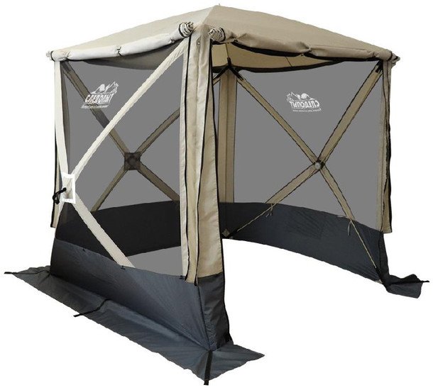 | Информация | Шатер Следопыт быстросборный. Шатер с автоматическим механизмом очень быстро переводится из транспортировочного состояния в рабочее. Установить шатер удается всего за 5 минут. Каркас изготовлен из прочного стеклопластикового гладкого прутка 10 мм. В качестве материала использована надежная ткань Oxford 300D WR PU 3000. В нижней части к шатру пришита внешняя юбка. Внутри имеются карманы для хранения мелочей. Для хорошего освещения внутреннего пространства на каждой из пяти сторон шатра располагаются большие окна с москитной сеткой для защиты от насекомых, а для защиты от дождя они закрываются занавесами. |