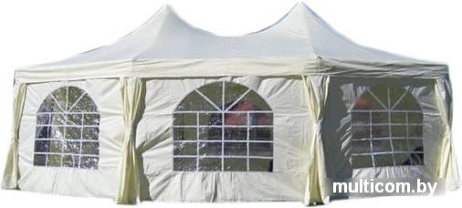 | Информация | Каркас шатра сделан из крепкого металла, стальные трубы. Шатер состоит из 7 боковых стенок с окнами, которые пропускают рассеянный дневной свет внутрь, из 1 дверного проема с застежкой-молнией и из 8 частей декорированных занавесями. Установка этого тента несмотря на габариты не займет много сил и времени. |