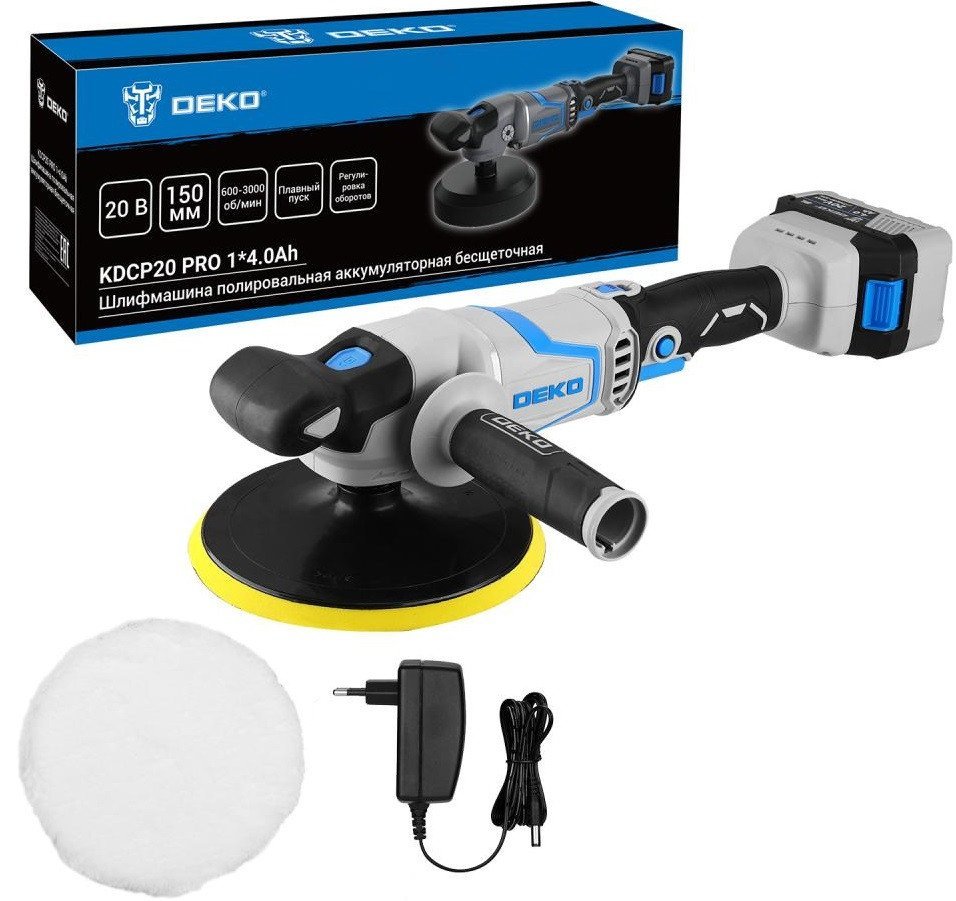 | Информация | Шлифмашина полировальная аккумуляторная DEKO KDCP20 PRO 1*4.0Ah обеспечивает качественную полировку и шлифовку различных лакокрасочных, полимерных и прочих покрытий |