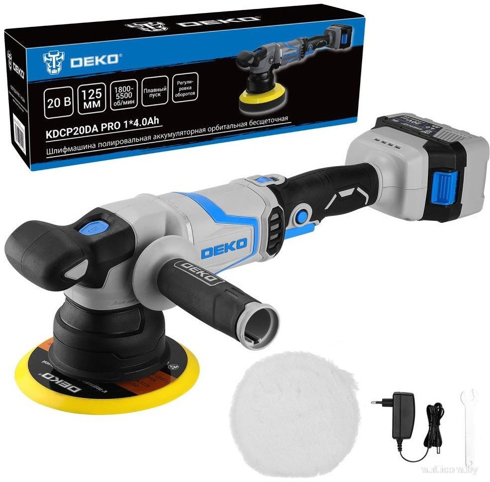 | Информация | Шлифовальная машина полировальная аккумуляторная орбитальная бесщеточная DEKO KDCP20DA PRO — это современный электроинструмент для профессиональной и бытовой обработки, шлифовки и полировки поверхностей из дерева, металла, пластика, лакокрасочных покрытий, деталей автомобиля (например, фар) и мебели. Модель болгарки оснащена бесщеточным двигателем, что обеспечивает увеличенный срок службы, стабильную мощность и минимальное техническое обслуживание. Технология бесщеточного мотора гарантирует высокую производительность машинки, низкий уровень шума и отсутствие необходимости в регулярной замене щеток. Такой двигатель обеспечивает эффективную работу даже при длительных нагрузках и стабильную скорость вращения. Работа от литий-ионного аккумулятора 20 В (4.0 Ач) позволяет использовать шлифмашинку вдали от электросети, что особенно удобно для обработки автомобиля, мебели, потолков, стен и других объектов на выезде или в гараже. Индикатор заряда на батарее обеспечивает своевременный контроль ресурса АКБ. 6-ступенчатая регулировка оборотов (1800–5500 об/мин) позволяет подобрать оптимальный режим для полировки, шлифовки и финишной обработки различных материалов. Плавный пуск предотвращает рывки при старте и снижает износ деталей. Амплитуда колебаний 15 мм и диаметр опорной тарелки 125 мм обеспечивают эффективную эксцентриковую обработку без риска появления царапин и перегрева поверхности. Мини-инструмент подходит для работы с кругами и насадками стандартного размера. Корпус с прорезиненной рукояткой, дополнительная боковая рукоятка и компактные размеры обеспечивают удобство при длительной эксплуатации. Функция блокировки курка позволяет работать в непрерывном режиме без усталости рук. В комплект набора деко входят: шлифмашина, аккумулятор 4.0 Ач, зарядное устройство, опорная тарелка, полировальный круг (шерстяной), дополнительная рукоятка, ключ и руководство по эксплуатации.  |
