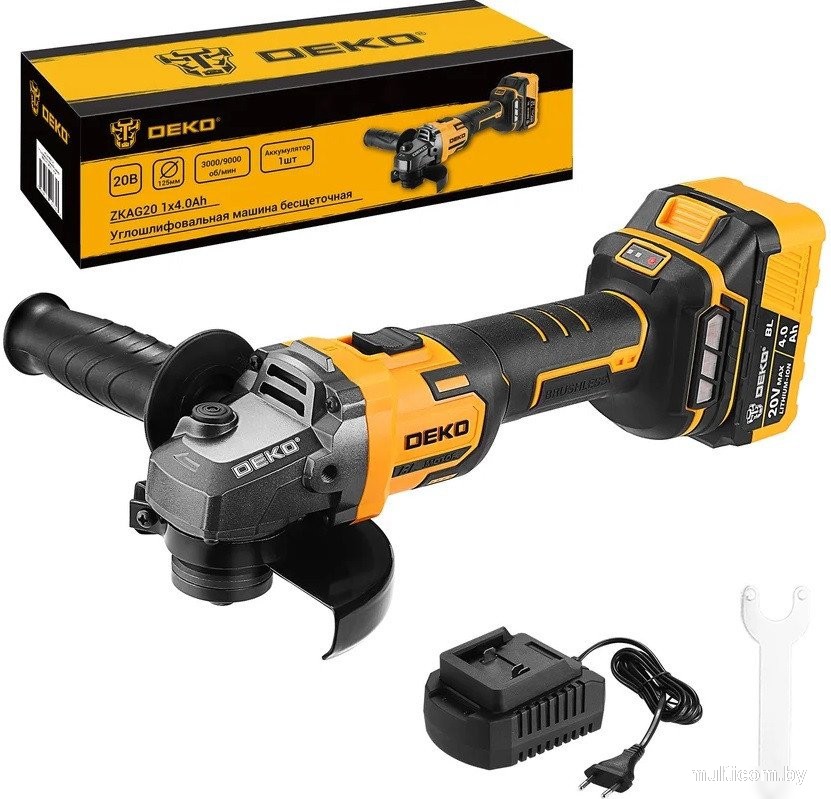 | Комплект поставки | - 1 шт углошлифовальная машина бесщеточная - 1 шт защитный кожух - 1 шт аккумулятор - 1 шт зарядное устройство - 1 шт дополнительная рукоятка - 1 шт фланцевый ключ - 1 шт руководство по эксплуатации |