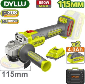 | Комплект поставки | - Угловая шлифмашина - 1 шт. - Боковая рукоятка - 1 шт. - Аккумулятор DTLBP540 4,0 Ач - 2 шт. - Зарядное устройство DTFCP518 - 1 шт. - Инструкция - Кейс |