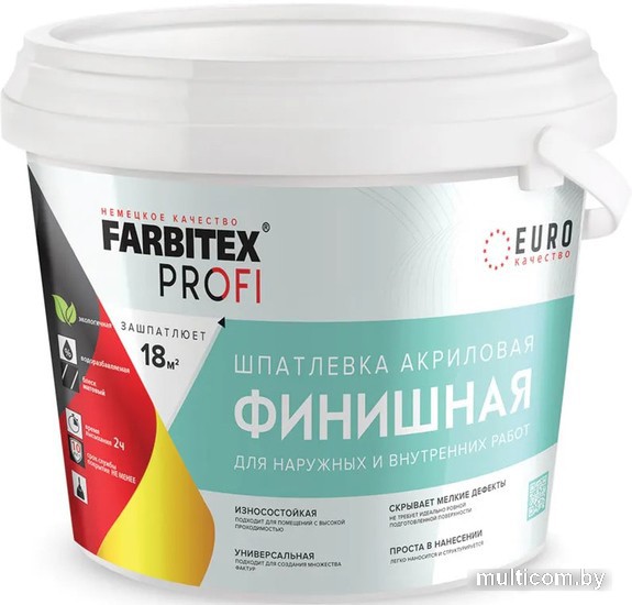 | Информация | Пластичная, легко наносится и хорошо шлифуется и не забивает шкурку, а значит не требует особых усилий мастера при работе. Имеет высокую адгезию. Идеальна для подготовки стен под окраску или оклеивание обоями. Содержит фунгицидные добавки. Легко выравнивает и исправляет все мелкие дефекты поверхности. Образует прочное покрытие атмосферо- и влагостойкое. Расход 1 кг/м2 Тип работ: внутренние и наружные Тип покрытия: шпатлевки Тип растворителя: вода Расход: 1 кг/м2 Время высыхания: 1-3 ч Температура нанесения: От +10°С до +35°С, относительная влажность воздуха 65%. Температура хранения: при температуре до -30°С, но не более 1 месяца Срок службы покрытия, лет: 10 Инструмент для нанесения (произвольный): кельма, шпатель. Поверхность должна быть сухой, очищенной от жировых загрязнений, не должна крошиться и осыпаться. Остатки старых клеевых и известковых побелок, а также отслаивающихся покрытий необходимо удалить, а основание промыть водой. При необходимости крупные дефекты поверхности необходимо выровнять штукатурным раствором. Сильно впитывающие основания рекомендуется предварительно обработать водно-дисперсионным грунтом "Farbitex Profi". ?В случае замораживания шпатлевку следует разморозить при комнатной температуре и перемешать до получения однородной массы. В случае загустевания шпатлевку разбавляют водой до рабочей вязкости. Шпатлевку наносить шпателем (из нержавеющего металла, пластмассы или другого материала, не склонного к ржавлению) в один или несколько слоев. Второй и последующие слои наносить при полном высыхании предыдущего слоя. После полного высыхания поверхность отшлифовать, пыль удалить. ? |