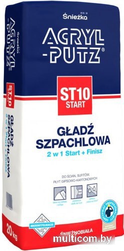 | Информация | Акрил путц старт финиш (Acryl Putz ST 10) – снежно-белая шпатлевка для выравнивания стен и потолков заделки стыков и швов гипсокартонных листов. Пр-во: Польша. Шпатлевка Акрил Путц ст 10 применяется для внутренних работ.Основные свойства Акрил Путц СТ 10:- обладает повышенная прочностью, высокой способностью к адгезии с основанием;- при высыхании не дает усадки, сохнет быстро, после чего легко шлифуется;- не образуются трещины даже при очень толстых слоях.Область применения Акрил Путц старт финиш.Шпаклевочная масса Акрил Путс ст 10 предназначена для использования внутри помещений. Особенно рекомендована для применения по гипсокартонным плитам (ГКЛ), для заполнения технологических швов с применением армировочной ленты (серпянки). Также хорошо подходит для шпаклевки и выравнивания неровностей по всем минеральным основаниям (штукатурки, кирпич, бетон), деревянных оснований. Благодаря своей рецептуре, шпаклевочная смесь Акрил-Путс старт-финиш может быть использована в качестве финишного слоя, без применения готовых шпаклевок. Шпаклевка Акрил-Путс не имеет усадочных свойств, высыхает в течение короткого промежутка времени, легко шлифуется и не трескается при нанесении толстым слоем (до 3-х см).Применение СТ 10.Сухую шпаклевочную массу Acryl-Putz следует развести чистой, холодной водой в пропорции 0,3 литра воды на 1 кг сухой смеси. В качестве ёмкости для приготовления смеси не следует использовать металлическую, ржавую посуду. Лучше всего подойдет пластиковое ведро или тазик. Вымешивание проводить с использованием специального малярного миксера, до получения однородной массы, без комков. Рекомендуется перемешивать смесь в два захода, с выдерживанием технологической паузы (3-5 минут). |
