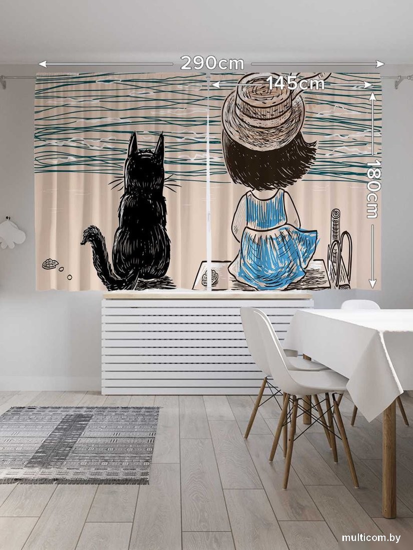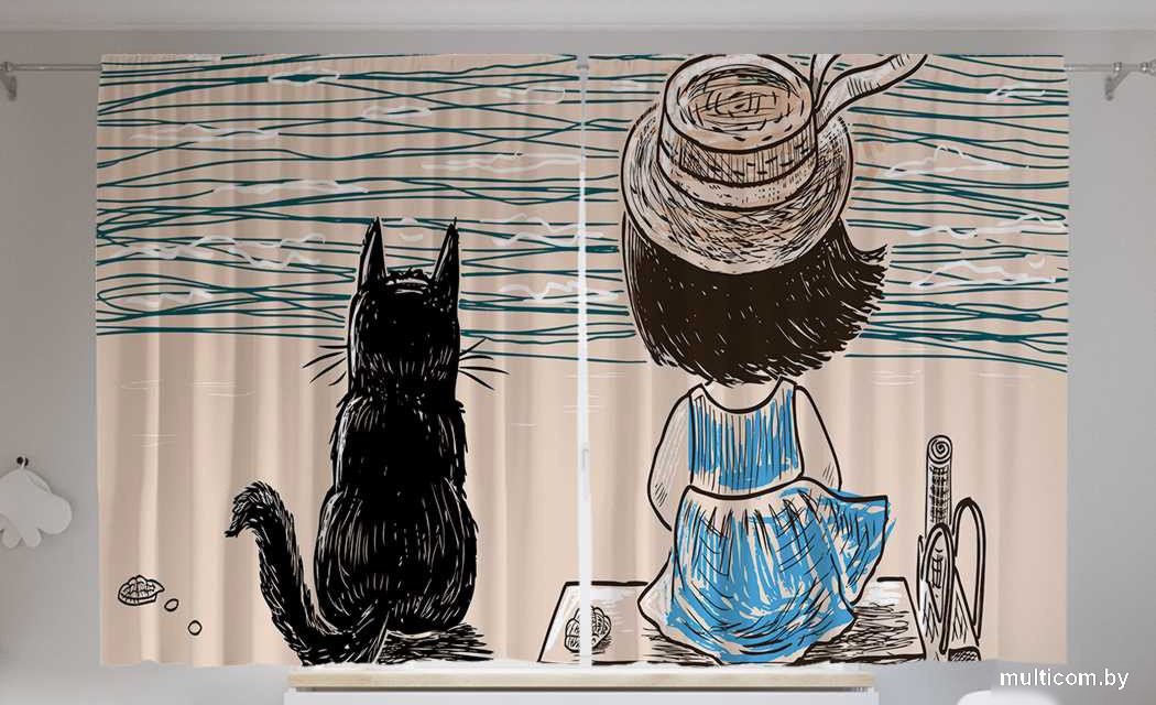 JoyArty Девочка с котом на берегу реки p_62491 (145x180)