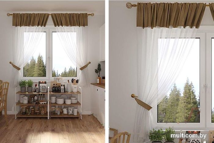 | Информация | Верхняя часть портьеры и подхваты выполнены из мягкой ткани Софт с легким блеском, а нижняя часть портьеры – из невесомой полупрозрачной вуали. Это удивительное сочетание создаёт яркую атмосферу и в тоже время сохраняет легкость и невесомость композиции. Идеальный вариант для оформления окна на кухне. При помощи шторной ленты для крючков легко регулировать ширину портьеры и создавать аккуратные равномерные складки, подгиб шторной ленты возможно использовать как кулиску для круглых карнизов диаметром 16, 19, 25 мм. Ткань отличается высокой износостойкостью, хорошо драпируется, защищает от солнечных лучей, не выгорает, при правильном уходе сохраняет форму и первоначальный внешний вид. Уход за тканью: разрешена бережная стирка при 30 градусах, глажка утюгом не выше 110 градусов. Характеристики: Ширина шторной ленты 6 см; Ткань 100% полиэстер; Подхваты плотность 180 гр/м2; Шторы плотность 45 гр/м2. В комплект входят две портьеры шириной 135 см высотой 160 см, со шторной лентой 6 см и 2 подхвата. |