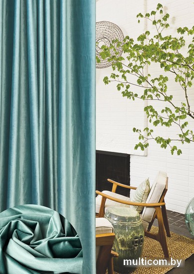 250 х 250 см, бархат, для жилой комнаты, голубой, крепление тесьма, ночные