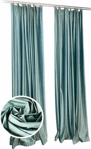 | Информация | Плотный, коротковорсный бархат-велюр. Широкая двойная подгибка по низу штор и по бокам по 7 см. Шторы пошиты на ленте, поэтому подходят на обычный карниз на крючки, а также на штангу с помощью крючков и колец. |