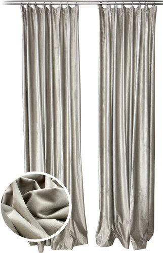 | Информация | Плотный, коротковорсный бархат-велюр. Широкая двойная подгибка по низу штор и по бокам по 7 см. Шторы пошиты на ленте, поэтому подходят на обычный карниз на крючки, а также на штангу с помощью крючков и колец. |