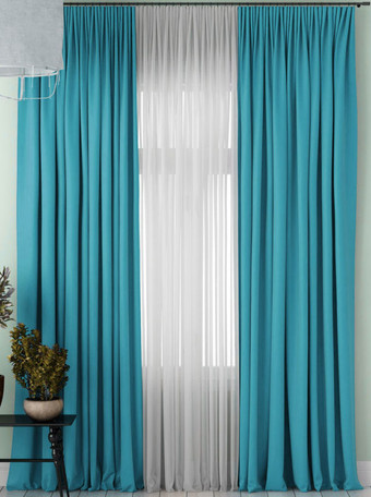 | Информация | ? Комплект штор Pasionaria Блэкаут 340x230 с подхватами (бирюзовый) - это набор из светонепроницаемой плотной ткани, который включает в себя также однотонную легкую вуаль. |