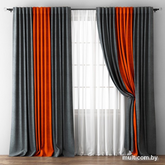 | Информация | ? Комплект штор Pasionaria Кирстен 480x230 с подхватами (мокрый асфальт/терракотовый) - это прямые плотные комбинированные портьеры на универсальной шторной ленте из ткани «Ибица». |