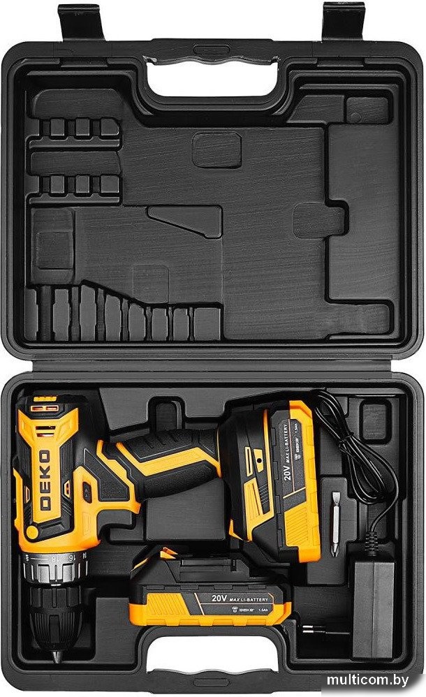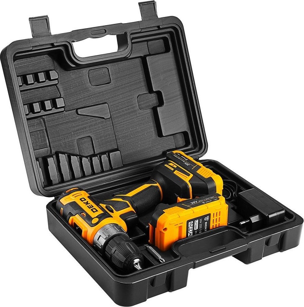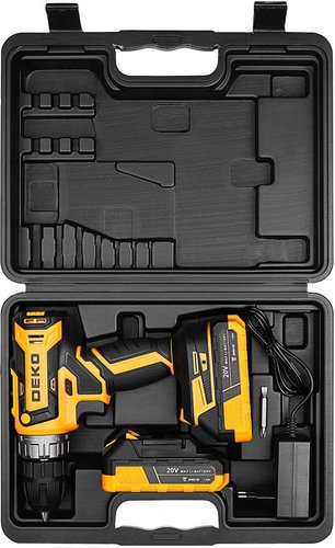 | Информация | Аккумуляторная дрель-шуруповерт DEKO ZKCD20V в кейсе, 20В, 2х1.5Ач используется при строительных, слесарно-монтажных работах. Помогает быстро высверливать отверстия нужного диаметра как на деревянной, так и металлической поверхности, быстро вкручивать или извлекать крепеж. |