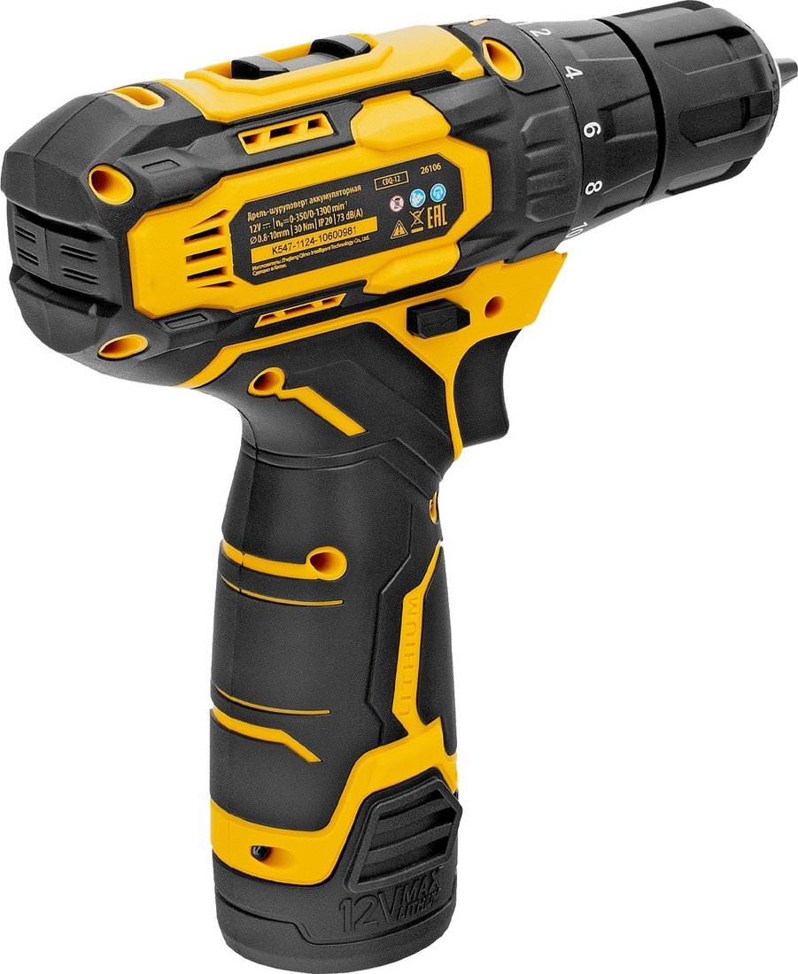 | Комплектация | - Дрель-шуруповерт аккумуляторная - Батарея аккумуляторная 2 шт - Устройство зарядное - Бита двухсторонняя - Инструкция по эксплуатации с гарантийным талоном - Пластиковый кейс |