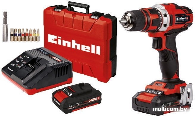 | Комплектация | - Аккумуляторная дрель - 2 аккумулятора 18В - Зарядное устройство - Набор оснастки из 8 предметов - Инструкция - Универсальный кейс E-Box S35 |