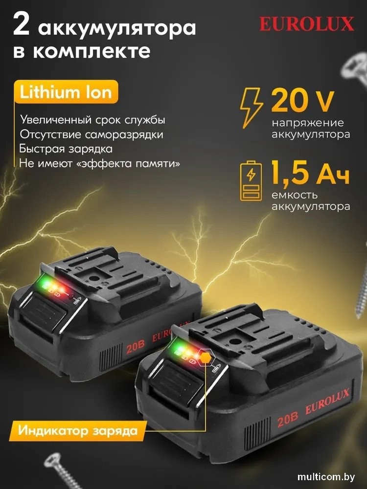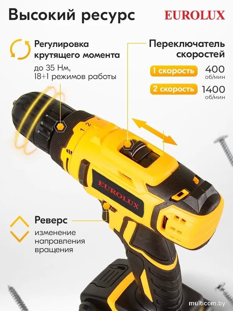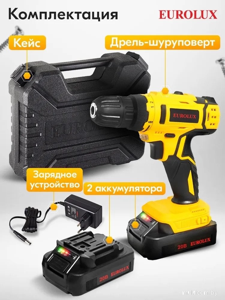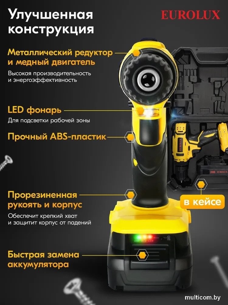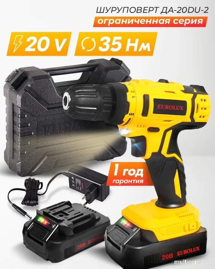 | Информация | ??Текст описания составлен при помощи искусственного интеллекта. - Дрель-шуруповерт Eurolux ДА-20DU-2 — это надежный инструмент, который станет незаменимым помощником как для профессионалов, так и для домашних мастеров. С максимальным крутящим моментом в 35 Н·м и двумя скоростями вращения, он идеально подходит для выполнения различных задач, от закручивания шурупов до сверления отверстий. - Благодаря аккумулятору на 20 В и ёмкостью 1.5 А•ч, вы сможете работать без проводов, что обеспечивает максимальную мобильность. В комплекте идут два аккумулятора, что позволяет вам работать без перерывов на зарядку. Индикатор уровня заряда поможет всегда быть в курсе состояния батареи. - Удобная подсветка делает работу в условиях низкой освещенности более комфортной, а быстрозажимной патрон позволяет быстро и легко менять насадки. Регулировка крутящего момента с 19 ступенями (18+1) дает возможность точно подбирать силу затяжки в зависимости от материала. - Не забывайте, что этот инструмент также оснащен реверсом, что делает его универсальным для выполнения различных задач. Компактный кейс в комплекте обеспечивает удобное хранение и транспортировку дрели-шуруповерта. - Выбирая дрель-шуруповерт Eurolux ДА-20DU-2, вы получаете качественный и функциональный инструмент, который поможет вам справиться с любыми задачами в доме или на даче. |