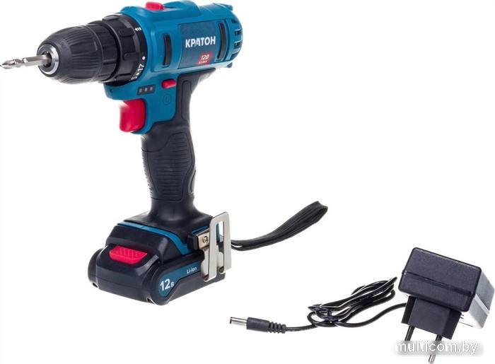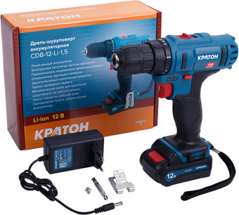 | Комплектация | 1. Дрель-шуруповерт - 1 шт. 2. Зарядное устройство - 1 шт. 3. Батарея аккумуляторная Li-ion, 12 В, 1,5 А·ч - 1 шт. |