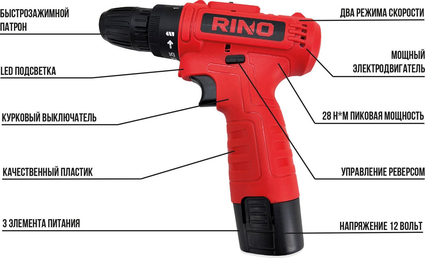 | Информация | - Аккумуляторная дрель-шуруповерт RINO DRL3-1 обеспечивает мобильность и удобство в работе. - Благодаря аккумулятору, она не требует подключения к сети и обеспечивает длительное время работы без подзарядки. - Этот инструмент идеально подходит для работы дома или в мастерской благодаря своей высокой производительности, функциональности и мобильности. |