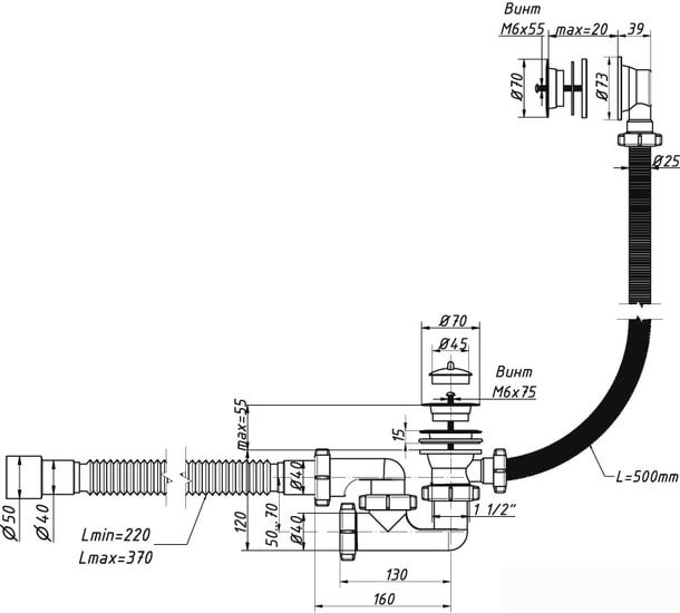 | Длина шланга системы перелива | 500 мм |