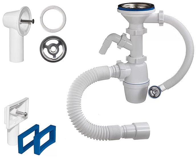 | Информация | Сифон с большим корпусом и отстойником, выпуском с нержавеющей чашкой д.114мм и одним отводом для подключения слива от стиральной или посудомоечной машины для мойки с переливом. В комплекте два перелива - прямоугольный и круглый, а так же отвод в канализацию гибкая труба 40-40/50мм. Вид сифона: бутылочный Вид мойки: Сливное отверстие 90 мм |