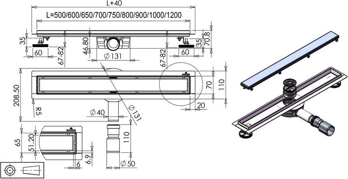 | Информация | ? Душевой лоток Supra Gun Metal двусторонний под плитку — это стильное и современное решение для организации душевой зоны. ? Лоток выполнен в цвете «оружейная сталь» и покрыт устойчивым к химическим и механическим воздействиям покрытием, защищающим изделие от коррозии и царапин. ? Корпус и решетка душевого лотка изготовлены из нержавеющей стали, а сифон обладает высоким уровнем прочности. ? Оборачиваемая декоративная решетка позволяет легко изменить дизайн душевой зоны, а модель характеризуется высокой пропускной способностью. ? Съемная решетка обеспечивает легкий доступ к внутренней части для прочистки от загрязнений, а комбинированный затвор эффективно препятствует проникновению канализационных запахов в помещение. ? Угол поворота сифона 360?, а регулируемые ножки позволяют нивелировать неровность пола. ? Модель предназначена для установки вровень с полом и имеет низкую монтажную глубину, что позволяет установить лоток в любом месте. ? В комплект входит универсальный переходник DN40/50, а модель доступна в различных размерах. ?? Характеристики: - Материал: нержавеющая сталь AISI 304. - Толщина стали, мм: 1.2–1.5. - Ширина съемной панели, мм: 51.2. - Ширина монтажной рамки, мм: 70. - Диаметр сливного отверстия, мм: 40. - Глубина установки, мм: 67–82. - Сифон поворотный на 360?. - Пропускная способность, л/мин: 50. - Материал желоба: нержавеющая сталь. - Вид затвора: комбинированный. - Горизонтальный слив. - В комплекте гидроизоляционный материал и регулируемые ножки. |