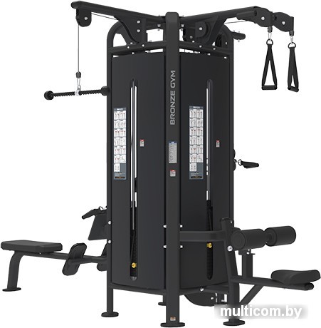 | Информация | 4-ех позиционная профессиональная мультистанция BRONZE GYM MS-1005 – эффективный профессиональный силовой тренажер, предназначенный для коммерческого использования, который позволяет комплексно прорабатывать все тело, обеспечивая отличный уровень атлетической подготовки. Тренажер включает в себя 2 станции для тяги сверху, станцию для гребной тяги, и одну кабельную колонну, что позволяет одновременно заниматься на тренажере до четырех пользователей. Передача нагрузки осуществляется с помощью тросово-блочной системы, в которой используется прочный трос толщиной 6 мм. Широкая рамная конструкция способствует дополнительной стабильности, обеспечивает равномерное распределение нагрузки исключая раскачивание и вибрацию. Тяговая колонна позволяет выполнять упражнения только одной рукой, но это не мешает попеременно прокачать обе стороны.. Вращающиеся рукояти обеспечивают свободные и естественные движения. На верхней перекладине предусмотрен турник, рукоятки которого позволяют выполнять подтягивания широким, нейтральным и узким хватом, акцентируя нагрузку на необходимые группы мышц. Конструкция мультистанции MS-1005 включает 4 грузовых стека общим весом 324 кг. Удобный выбор нагрузки осуществляется с помощью штифтов. |