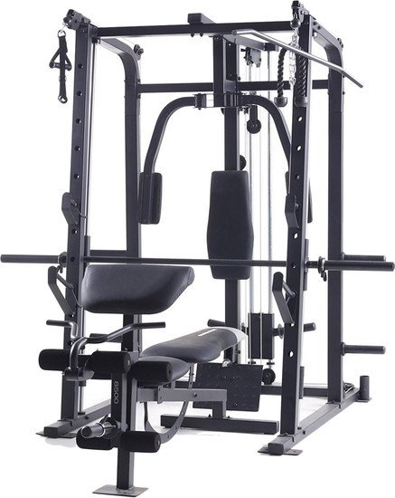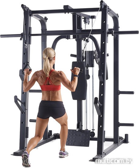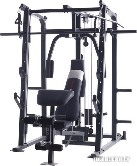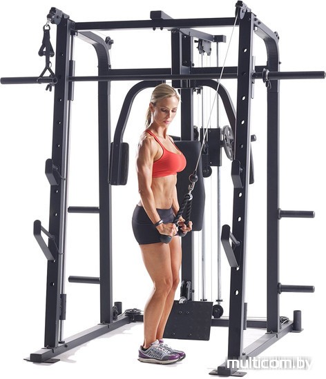 | Информация | Силовая станция со скамьей WEIDER PRO 8500. Изготовлена из прочного стального профиля. Скамья со спинкой позволяет отрегулировать угол наклона.В комплекте опции для выполнения различных силовых упражнений: Машина Смита, тяга сверху / снизу, баттерфляй, парта для бицепса, жим ногами, жим лежа на скамье дополнительной штанги (опция).В качестве нагрузки используются диски диаметром 50 мм (опция). Кронштейны для установки штанги и дополнительные кронштейны для контроля (страховки) регулируются по высоте. Для хранения весов (дисков) предусмотрены 4 держателя, посадочный размер 50 мм. |